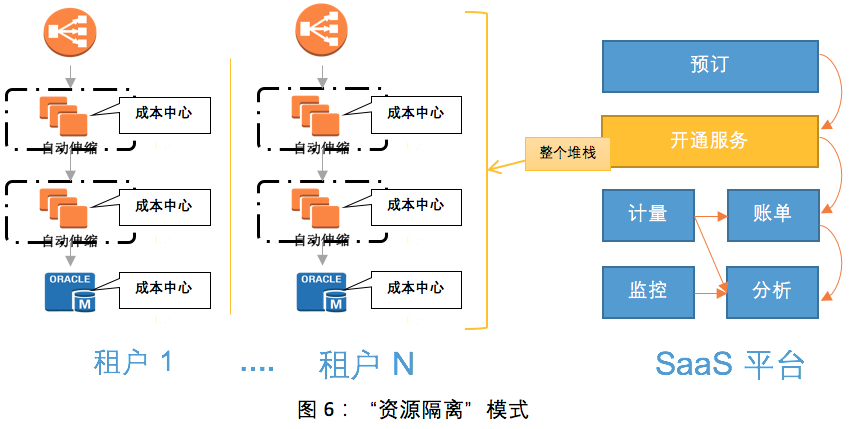 第一个最佳实践就是将平台化的功能隔离出来,SaaS产品的更新速度是非常快的,但是我们仍然能够总结出一些核心的功能是基本不变或者能够在很多其他新的产品模块中重用的,要将这部分功能分离出来进行平台化改造以服务于更多的其它功能,将这些功能平台化以后也会降低整个系统的耦合性从而支撑更多的SaaS应用的功能。对通用功能的平台服务隔离可以更好的调优和独立扩展,同时重用核心服务并结合应用框架的使用会极大提升应用开发的效率。